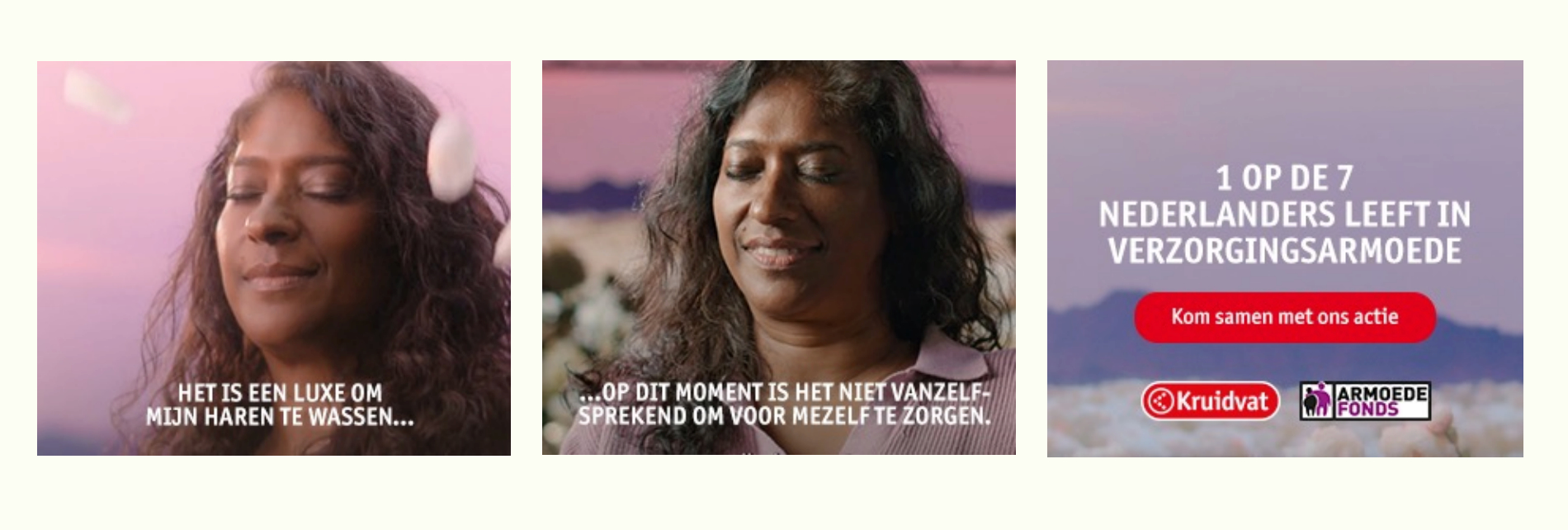 • Fase 3 - Engagement: Op wereldarmoede dag werd de campagne ‘Jezelf verzorgen mag toch geen luxe zijn?’ gelanceerd. Deze bracht de emotionele impact in beeld, met echte verhalen en herkenbare situaties.
